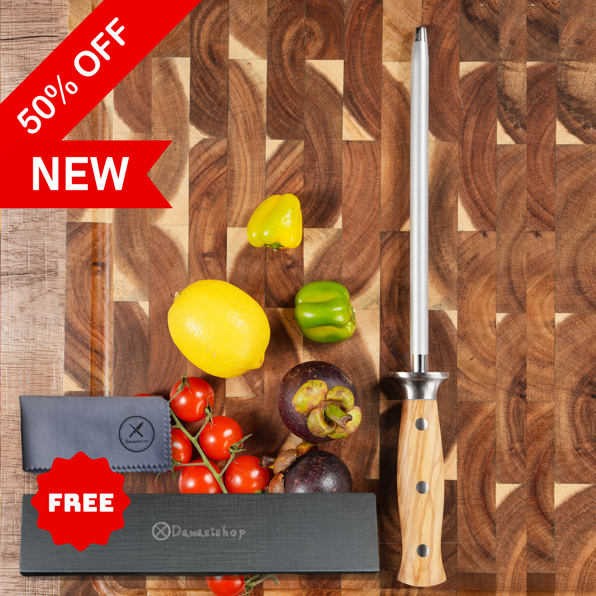The ergonomic olive wood handle is crafted for comfort, control, and timeless beauty.